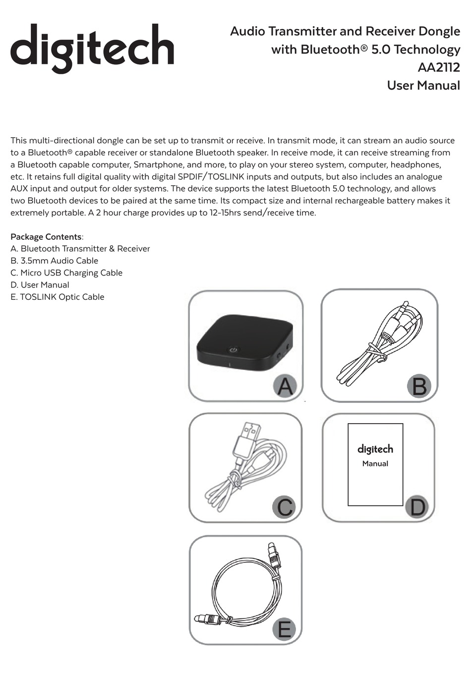 User Manual Digitech Audio Aa 2104 Aa2104 Bluetooth Transmi Manualsfile
